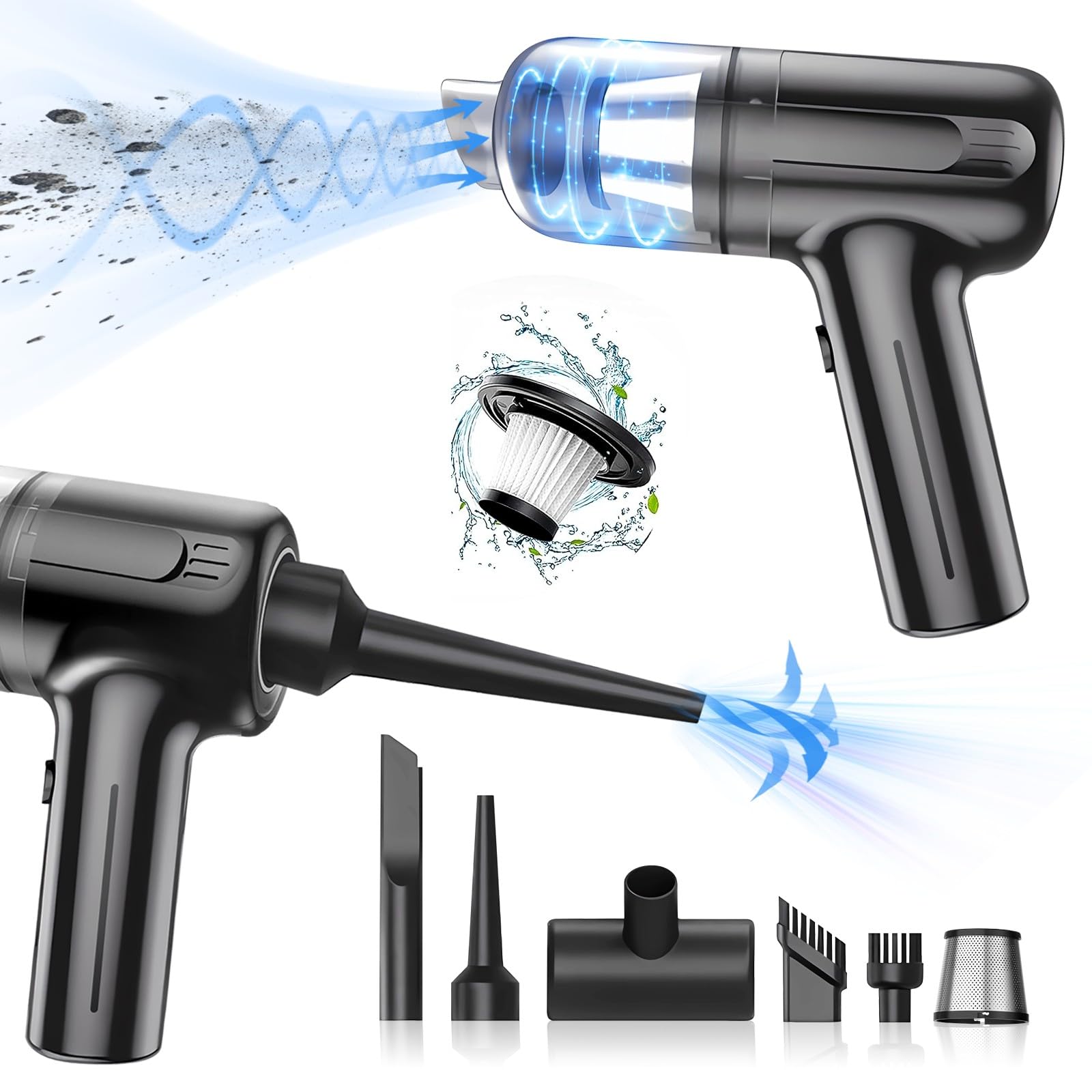 Inclus : 1x aspirateur à main, 1x buse à brosse, 1x buse fendue, 1x buse soufflette, 1x câble de chargement USB de type C.
